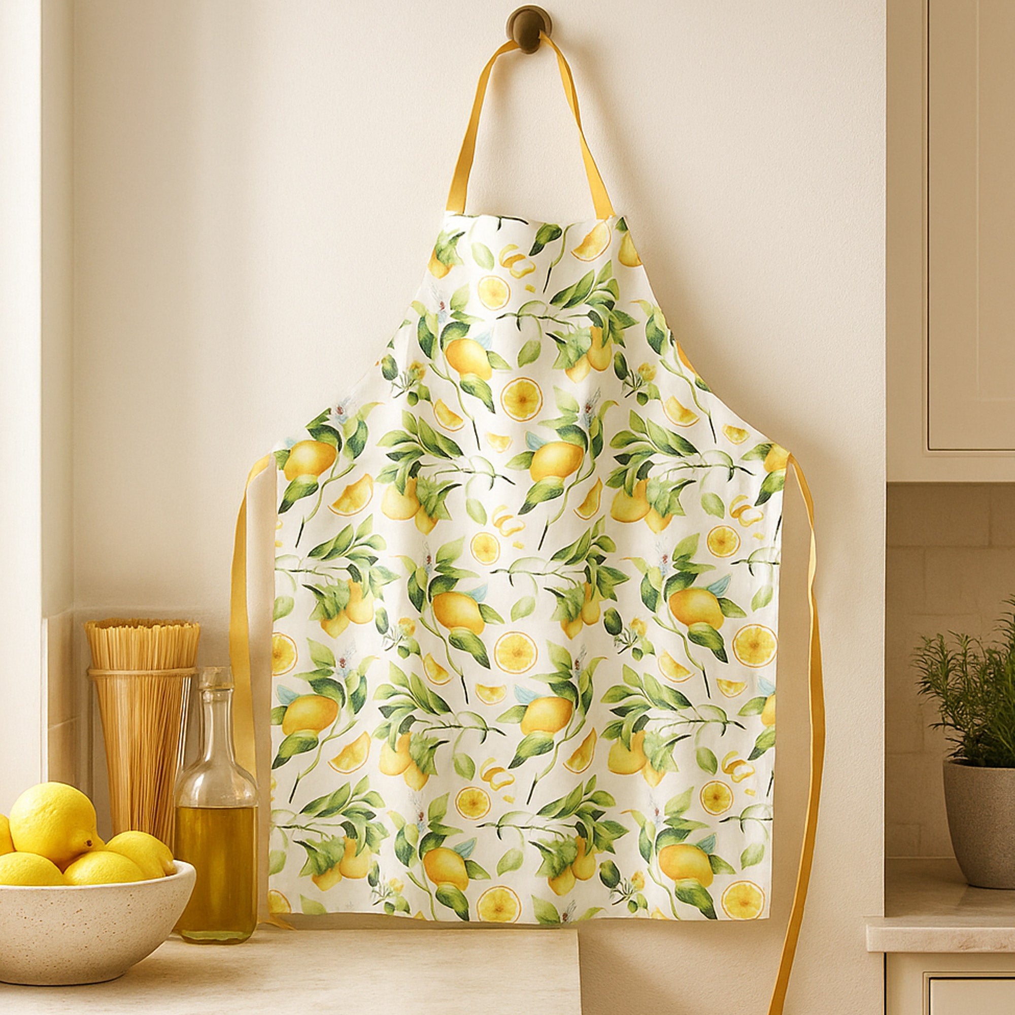 Lemon & Leaf Design Cotton Apron