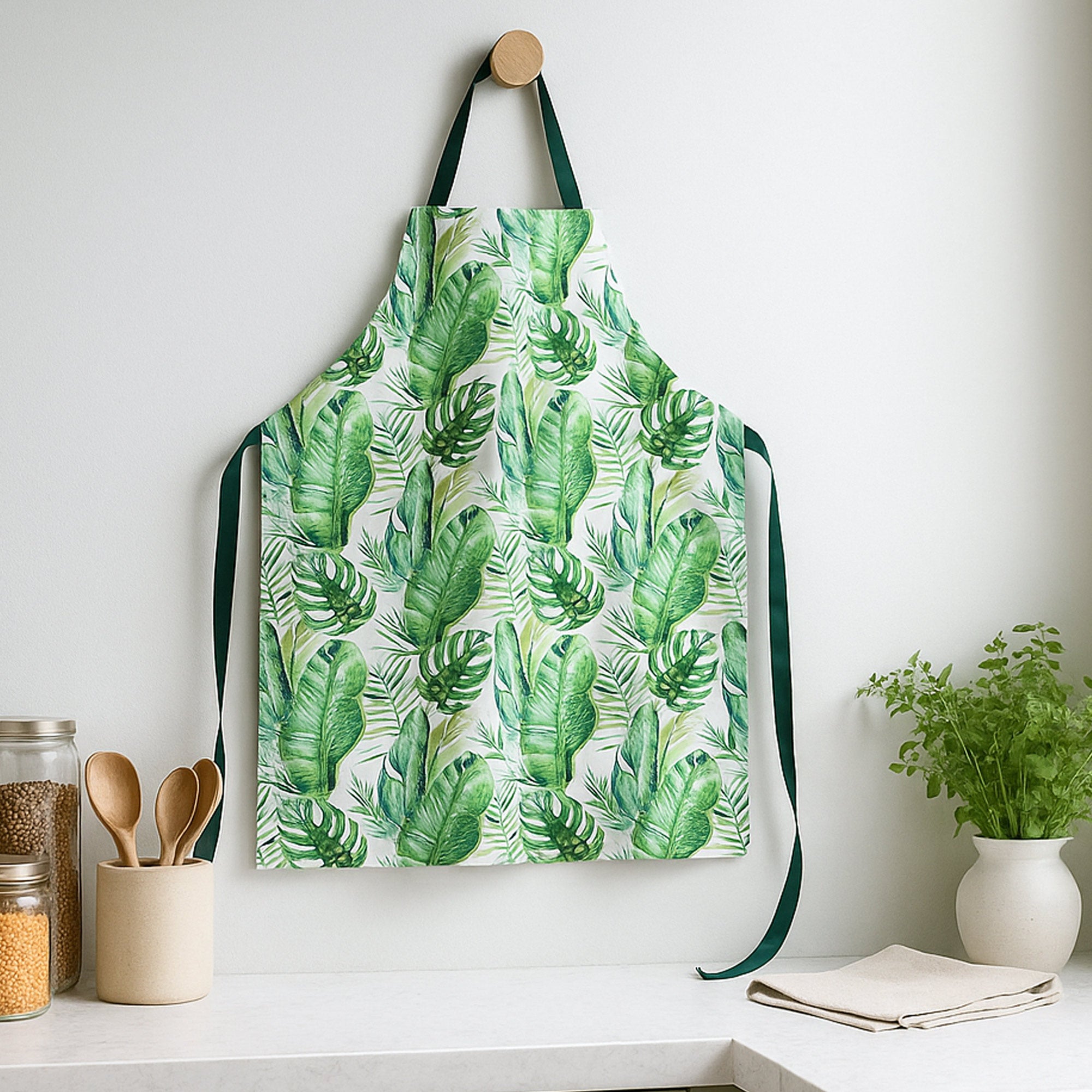 Tropical Leaf Design Cotton Apron