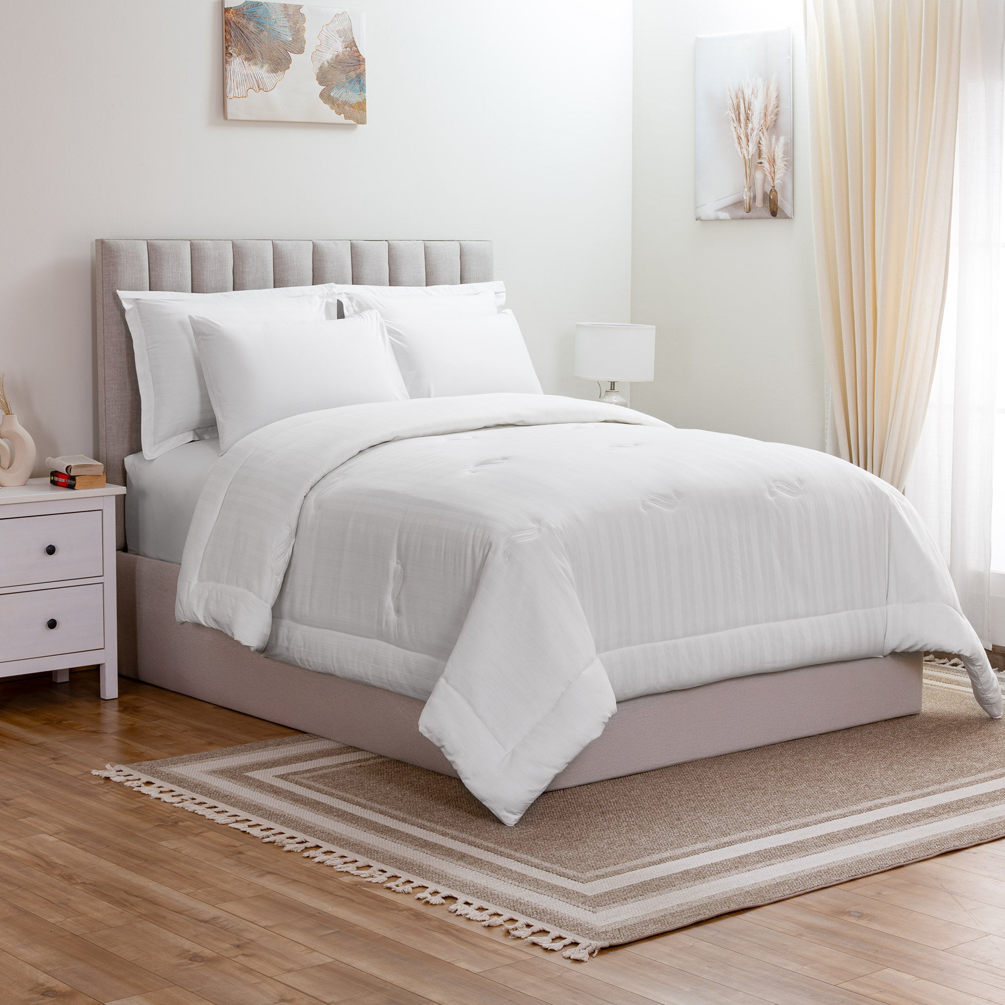 Experience the perfect balance of softness and durability with this 6-piece 100% Cotton Stripe Comforter Set. Lightweight yet long-lasting, it elevates your space with timeless sophistication and comfort.